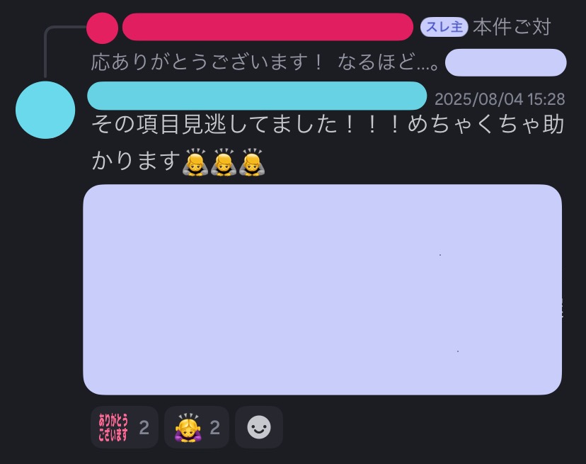 会計チーフは気づき上手。私が仕事して作ってきたもののチェックをお願いと、「たしかに!!!」ってなるコメントが返ってきます。これ、私が一番できないことなのでめちゃくちゃ助かりました。ワイもできるようになりてえ〜〜〜!😭
